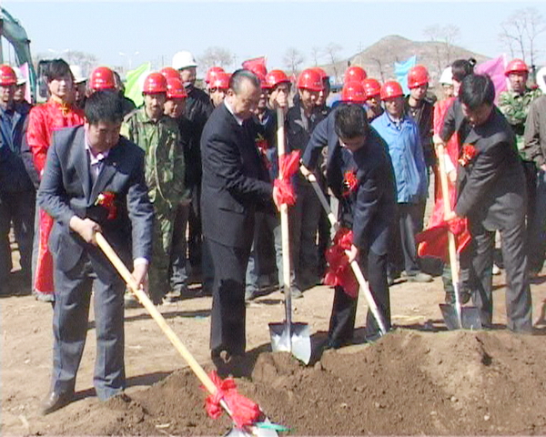 2009年3月22日上午, 我集團六公司中標的位于張家口市高新區清水河畔的親河苑住宅小區工地,彩旗飄揚,鑼鼓宣天,10時28分,開工典禮隆重舉行,做為親河苑住宅小區一期工程的施工方之一,我集團公司張蘭柱董事長與張家口市的有關領導共同進行了奠基儀式,趙志剛副總經理代表保定建業集團及施工單位致了賀詞。