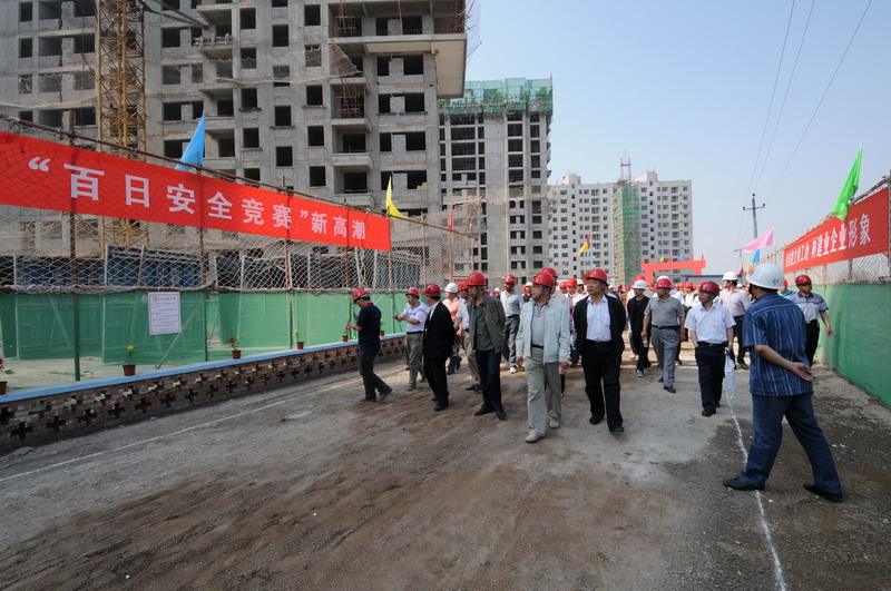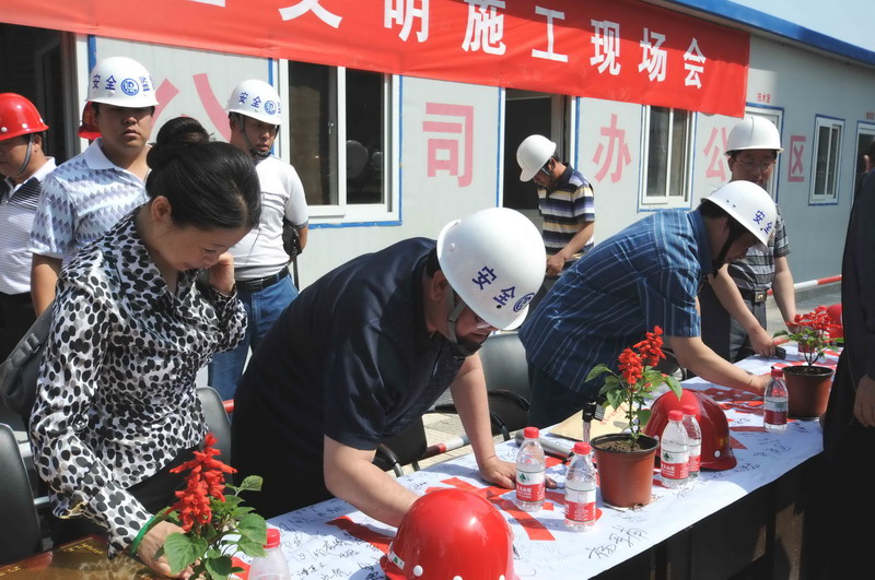 2010年6月4日,張家口住建局在我集團六公司承建的張家口親河苑小區項目部召開了建筑施工安全文明施工現場會,張家口市住建局局長李義、安監站站長張芝祥及各區縣住建局、安監站負責人,施工、監理單位負責人共72個單位220余人出席了會議,并在我集團安全百日賽的宣傳條幅上了簽字。