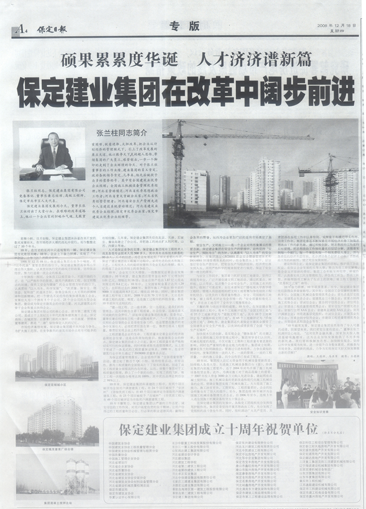 保定日報(bào)專版報(bào)道集團(tuán)公司成立十五周年